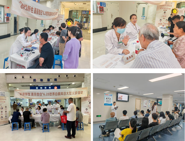 2025年6月25日是第15个“世界白癜风日”,当天上午,皮肤科举办了主题为“肤焕新生·美丽告白”的公益义诊宣传活动,向来院患者和群众普及白癜风相关知识,提升公众对白癜风等皮肤顽疾的科学认知,呼吁社会各界共同关注特殊人群的皮肤健康问题。