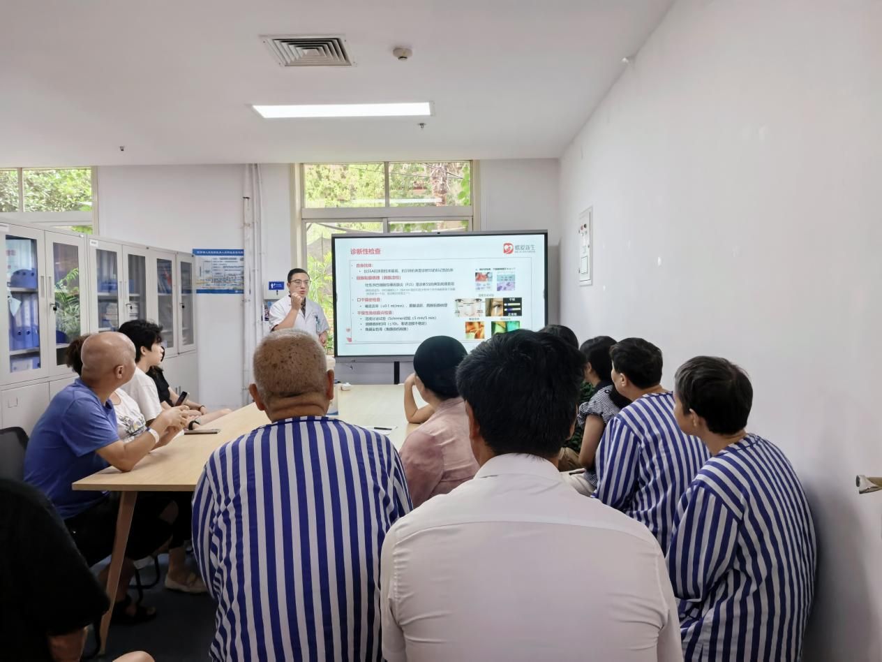 义诊当天,风湿免疫科医护团队对前来门诊大厅咨询的患者进行了细致评估、详细筛查、解答疑惑,发放科普手册,并为高危人群监测血压,免费开展泪液分泌试验测定。聚焦干燥综合征的疾病认识、诊断治疗与护理,专家团队在住院部举办科普讲座。活动累计服务80余人次,赢得了患者以及现场群众一致好评。