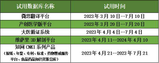 3、数据库试用(网址、用户名及密码,我们会发至院内各服务群中)