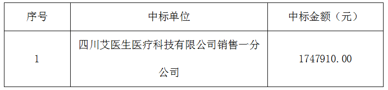 本项目黑料网 妇产科耗材采购项目(编号:SCZD2023-CS-0483/001),经招标人确定的中标人如下: