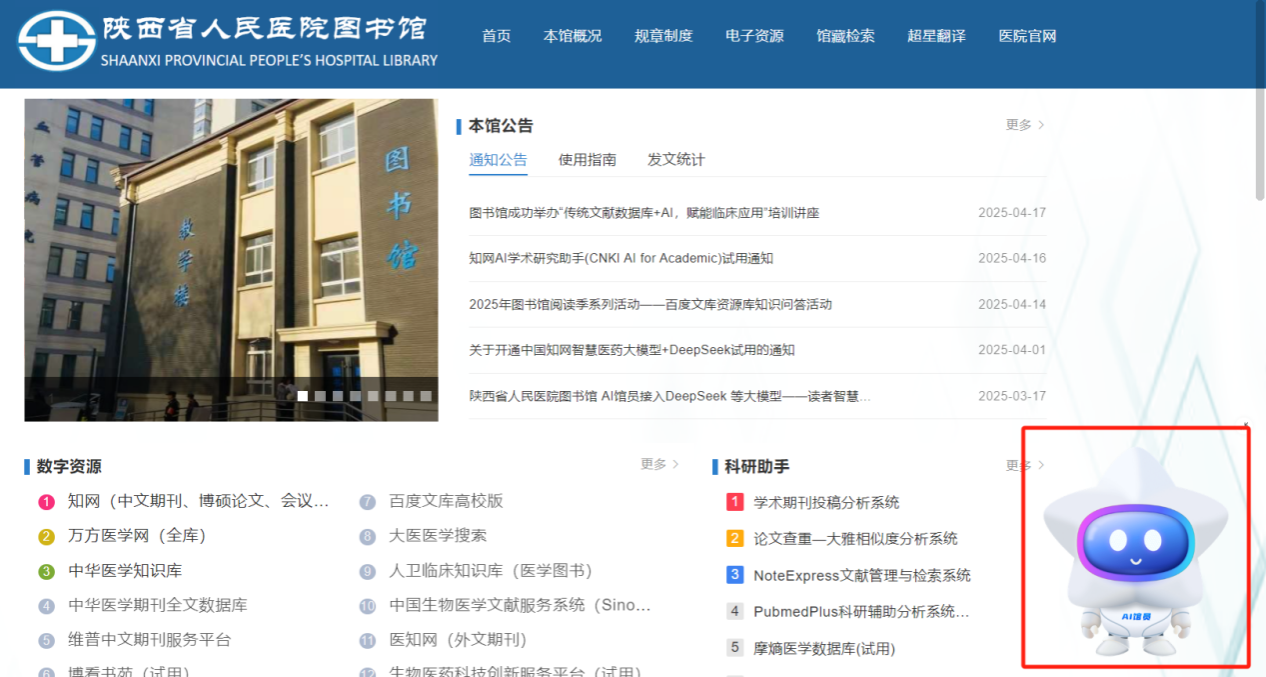 今年,院内数字图书馆门户网站新上线了AI馆员,提供24小时咨询服务,帮助读者更好地使用黑料网