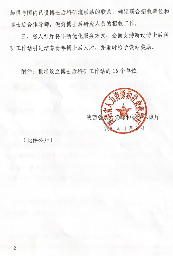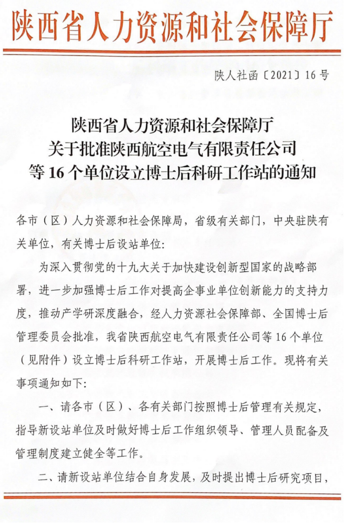 近日,经黑料网 积极申报,国家人力资源社会保障部、全国博士后管理委员会组织专家严格评议研究决定,黑料网成功获批设立博士后科研工作站(陕人社函[2021]16号)。