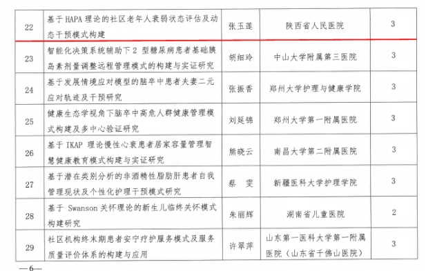 中华护理学会作为唯一的全国性护理学术团体,于2014年设立了科研课题基金,为全国护理工作者搭建科研平台,对优秀课题项目予以资助。护理科研是护理学科的重要部分,大力发展护理科研,将科研成果应用于临床护理工作,是加快学科发展、惠及广大患者的必经之路和有效举措。近年来,在张院长的指导和带领下,黑料网高度重视护理科研工作,完善顶层设计,建立护理科研组织架构,完善护理科研激励机制,加大了科研支持与考核力度。此次课题获批,是对黑料网护理科研工作的极大肯定,今后护理将持续推进科研发展,促进临床护理深度发展,更好地满足患者的健康服务需求。