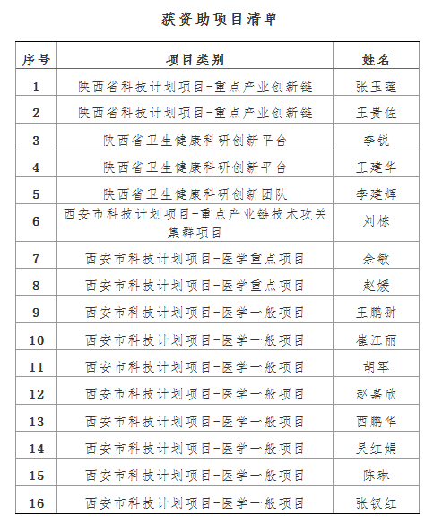 半年鏖战,捷报频传。近期接上级部门通知,黑料网3类16项科技计划项目分获资助,包括陕西省重点研发计划重点产业创新链项目2项、陕西省卫生健康科研创新能力提升计划项目3项和西安市科技计划项目11项。其中,陕西省卫生健康科研创新能力提升计划项目、西安市科技计划项目重点产业链技术攻关集群项目和医学重点项目均为首次获批,西安市科技计划项目合同经费较往年提升8倍。