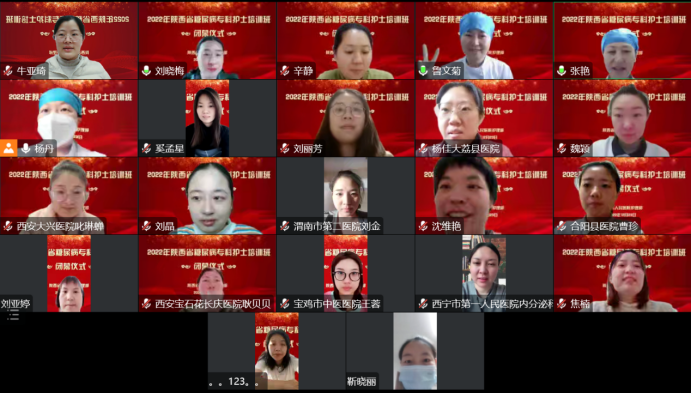 2022年12月23日上午,陕西省第四期糖尿病专科护士培训班于线上圆满闭幕。护理部副主任刘晓梅、内分泌糖尿病病院主任李小凤、护士长张艳、18名学员及相关人员参会。内分泌科二病区鲁文菊护士长主持。