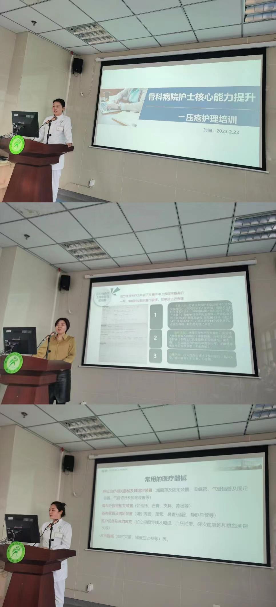 压疮防护是临床护理工作的重点和难点,为更新和提高临床护士对压疮护理新动态的掌握,规范压疮护理,提升压疮防治水平,2月23日下午,骨科病院田昕护士长组织开展压疮护理专题培训,全体护理人员参加。
