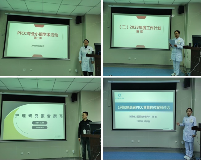 会上,PICC小组组长、肿瘤内科何莉护士长对本年度工作计划进行解读,重点从建立健全PICC相关质量控制标准及效果评价制度、充分发挥PICC专科护士作用、降低导管相关并发症发生、参与PICC相关科普知识及微课推送、门诊管理流程、上门服务工作模式及考核机制等方面进行安排。随后,护理部鱼星锋博士做《护理科研报告撰写》授课,结合案例从研究计划书的撰写、研究论文书写的格式、内容、写作原则、步骤等方面进行讲解,内容详实,指导性、实用性强。肿瘤内科姚娜主管护师汇报了1例肺癌患者PICC导管移位疑难案例,小组成员针对存在的疑点进行热烈讨论,大家各抒己见,相互交流、相互学习,共同提高。