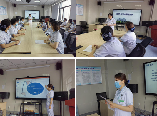 仵晓荣护士长围绕安全用药“知识关” “管理关” “执行关”及五个用药原则等方面进行详细解读。高年资护士李仙莉、陈昕等以PPT的形式全面讲解了临床用药存在的各种安全隐患,同时结合典型的用药不良事件案例等进行深入分析。随后大家分享了一些用药不良事件及典型的案例等一系列问题的应急预案与流程,并针对科室安全用药问题展开分析讨论,查找科室用药风险隐患,从人员搭配、特殊时间段、特殊药物及核心制度落实等方面进行分析,进一步完善优化科室用药安全管理制度,提高对安全用药重要性的认识。