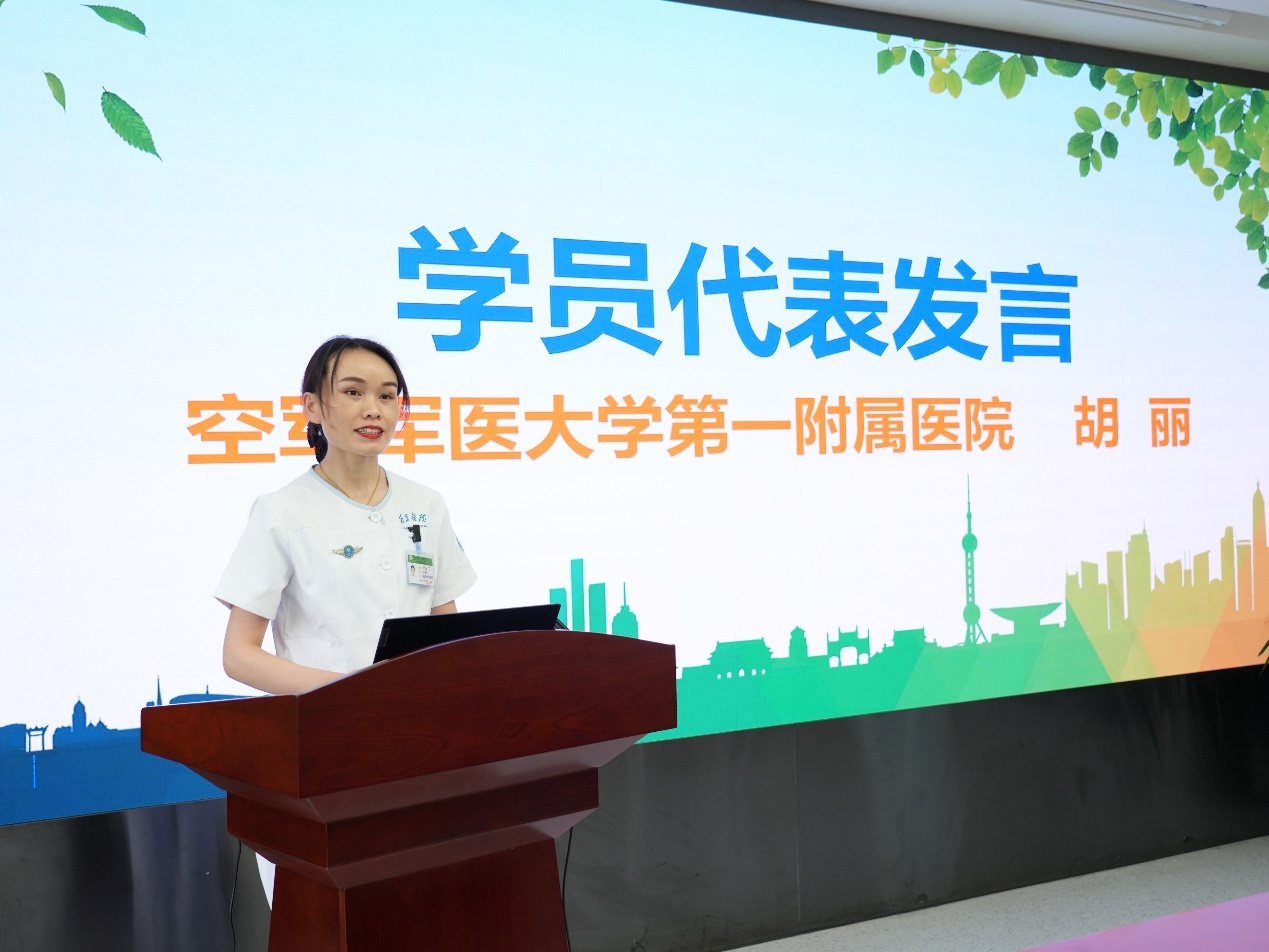 的学员代表胡丽分享了自己的收获与感悟,衷心感谢培训基地的老师们倾囊相授和言传身教,赞叹省医急诊蓬勃发展的同时,表示一定将省医所授之“道”带回所在单位发扬光大。