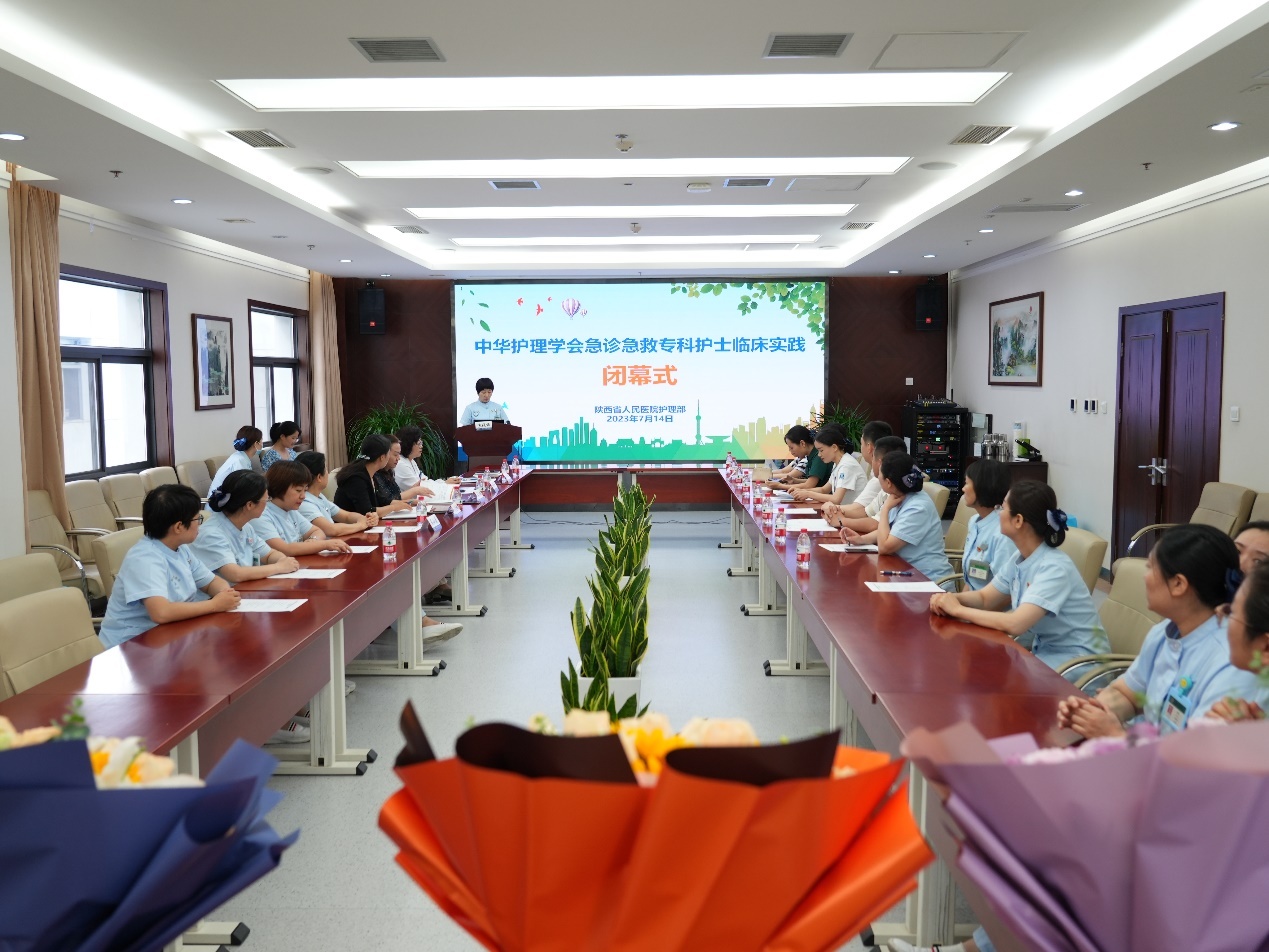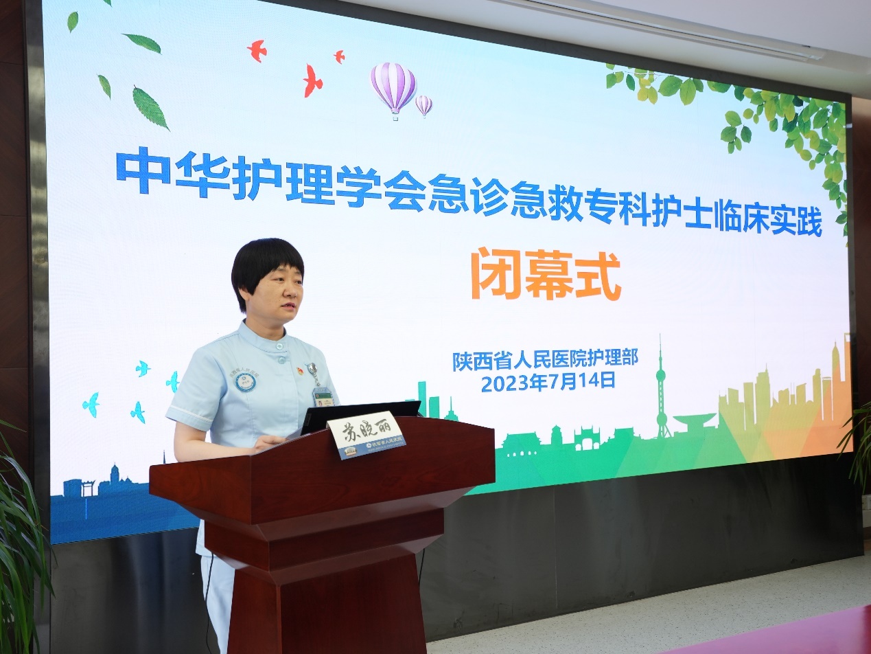 7月14日上午,中华护理学会急诊急救专科护士临床实践闭幕式在黑料网举行,陕西省护理学会张华丽秘书长、护理部吴红娟主任、急诊内科刘丹平主任、护理部刘晓梅副主任、刘红梅主任助理、王晓庆总护士长、急救中心护士长、基地师资团队及4位学员参加闭幕式。会议由急诊外科苏晓丽护士长主持。