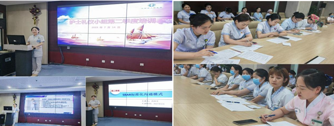 培训会上,肖培芬护士长通过多种案例演示讲述了“SBAR标准化沟通”模式。此项沟通模式是一种以证据为基础的标准沟通模式,在紧急情况下保证了信息的准确传递。该交流模式是医护人员之间快速准确传递病情状况的一种方式,运用SBAR交班模式,内容精简且具有针对性,提高了接班者对有效信息的接收率,简化了交班流程,缩短了交班时间。在护理查房、向医生汇报病情时,护士更能及时、准确的掌握患者的病情。通过此次培训课程的学习,使小组成员评判性思维及表达能力得到了有效的提高。