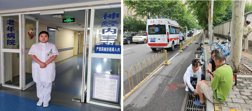8月20日下午,神经内三科护理实习生王雨晴结束一天的实习后,途经后村西路,看到一位60岁左右的男子倒在路边,自行车的车撑深深插进了他的小腿里,血流不止。与他相撞的女子则慌忙使用卫生纸擦着涌出的血。