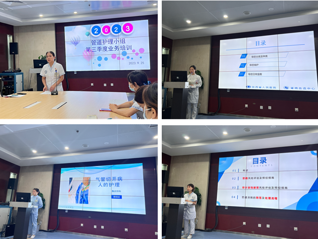 肾病血透中心二病区江艳、急诊外科惠锦姣、神经内三科杨晓路分别就《长期血液透析患者管道管理与护理》、《气管切开患者呼吸道管理》《老年带管路患者预警管理》等进行详细的讲解。主要讲授了专科导管的种类、适应症、目的、导管相关性感染及各类并发症预防措施;气管的解剖、气管切开的适应症、禁忌症、并发症观察和预防及护理方法;老年患者留置管路的特点及置管前、中、后如何做到规范标准的评估及非计划拔管预控策略及预控措施,出院带管路患者的路径式Teach-back健康教育模式等,授课内容精彩纷呈,切合临床,收获颇多。大家就临床中管路护理难点问题进行了热烈讨论。