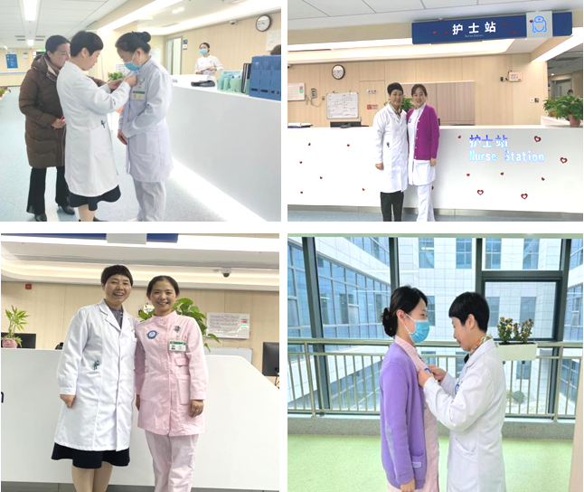 12月13日上午,西咸院区举行四个科室护士长胸牌授予仪式,护理部刘晓梅副主任、西咸院区业务管理部王倩总护士长、方雪红老师分别为心血管内四科柳莎莎、呼吸与危重症三科王静、儿科五病区樊莹丽、西咸产科邵飞飞授予护士长胸牌。