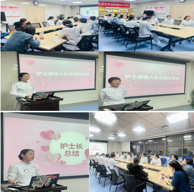 普外一科:为进一步提升护士职业价值感,践行双心文化,12月12日下午,护士长肖海敏组织召开了普外一科“磁性护理月”活动,科室全体护理人员参加。分享了磁性关爱在我们日常工作中的重要意义、老年胃肠肿瘤心理护理、胰岛素皮下注射指南的解读、护患沟通技巧,“护士感悟人生交流分享会”将活动气氛推向了高潮。