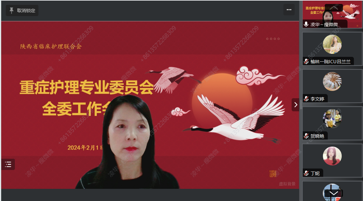 2024年2月1日下午,陕西省临床护理联合会重症护理专业委员会通过线上方式成功召开2024年工作安排会议。会议由李文婷秘书主持。
