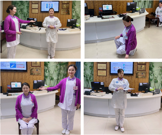 在培训中,礼仪组长王庆从仪表、举止、语言和日常四个方面进行护士服务礼仪的讲解和演示。护士的礼仪不仅体现了专业形象,更关乎服务对象的心理感受。在培训中,全体护士通过观看视频、模拟演练、现场纠错多重形式进行学习,在培训中把握并加深尊重、耐心、沟通的礼仪规范操作,以创造温馨的医疗环境。最后李阳副护士长进行点评,强调了服务规范的核心价值,要求致力为每一位受检者提供健康舒适的体检服务。