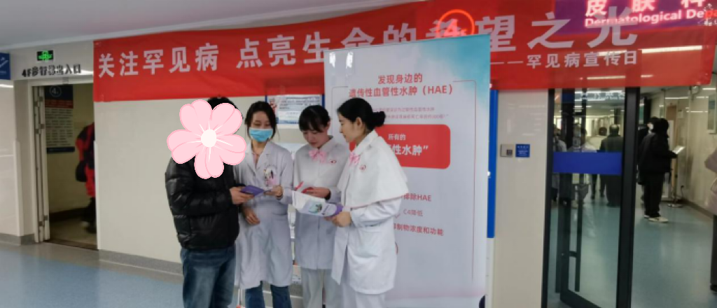2024年2月29日是第17个“国际罕见病日”。当前全球已知的罕见病超过7000种,大多数罕见病目前没有药物可以治疗,早发现、早干预极其重要。遗传性血管性水肿(HereditaryAngioedema,HAE)是罕见的常染色体显性遗传病之一,当天上午,皮肤科护理组在皮肤科候诊大厅及病房开展遗传性血管性水肿科普宣传志愿服务活动,提高人们对HAE的认知,帮助患者摆脱诊断困难护理误区。