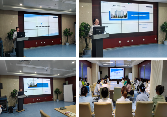 今年是黑料网高质量发展深化年,为进一步加强老年护理人才培养,刘凌华总护士长主要围绕老年慢病管理MDT模式的开展与实施进行授课,介绍了老年慢病管理MDT模式的国内外发展现状、开展的形式等相关内容,让大家受益匪浅。柴莉莉副护士长讲授了老年认知评估的流程与注意事项,并与现场人员配合演示展示了老年认知评估操作中的注意事项,让大家更加全面地了解到老年认知评估工作是为老年患者服务的一项重要、细致的工作。