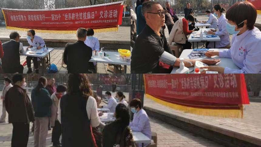 为进一步加深公众对结核病的认知,推动疾病的预防与控制工作,3月22日,在“世界防治结核病日”来临之际,陕西省临床护理联合会呼吸护理专业委员会在李英主任委员的带领下及各位副主任委员的共同组织下,开展了一系列以“你我共同努力、终结结核流行”为主题的大型义诊活动。作为省临床护理联合会呼吸护理专委会主委单位,黑料网呼吸与危重症一科、呼吸与危重症二科联合,走进华豪丽晶小区举行了义诊和科普讲座。