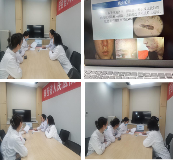 培训中,皮肤科主管护师李露讲解了皮肤科门诊手术室的规章制度、工作流程、以及手术患者的术前就诊流程和术后换药等,同时对术后所发生的突发情况进行了术后应急预案培训。王希艳副护士长对皮肤科的常规护理操作规程,包括女性取材、男性取材、皮肤真菌以及螨虫取材等做了详细的护理规范讲解以及培训。