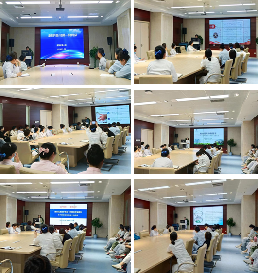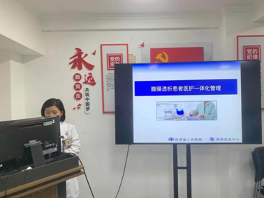 肾病血透中心全体护理人员共计80余人分别线上线下参会。腹膜透析专科护士鲁艳博就《腹膜透析患者医护一体化管理》进行讲解。她强调医护一体化管理是一种科学高效的护理管理模式,能够有效提高护理效果及护理效率,通过开展医护一体化可以提升患者就医体验及管理质量。副护士长孟伊霏就《科研标书撰写》进行讲解,从科研选题和撰写要求及要点进行了剖析,强调科研的本质是创新,护理人员应勇于投身科研实践,将未知变成已知,用已知指导创新,培养高素质的护理专业人才。血液透析专科护士梁晨讲解了《“院”平安,“感”安全》知识进行,主要强调了日常工作中的院感细节及院感防控措施,内容包括标准预防的概念、措施及操作原则,手卫生的重要性及工作人员与患者的管理要求等。