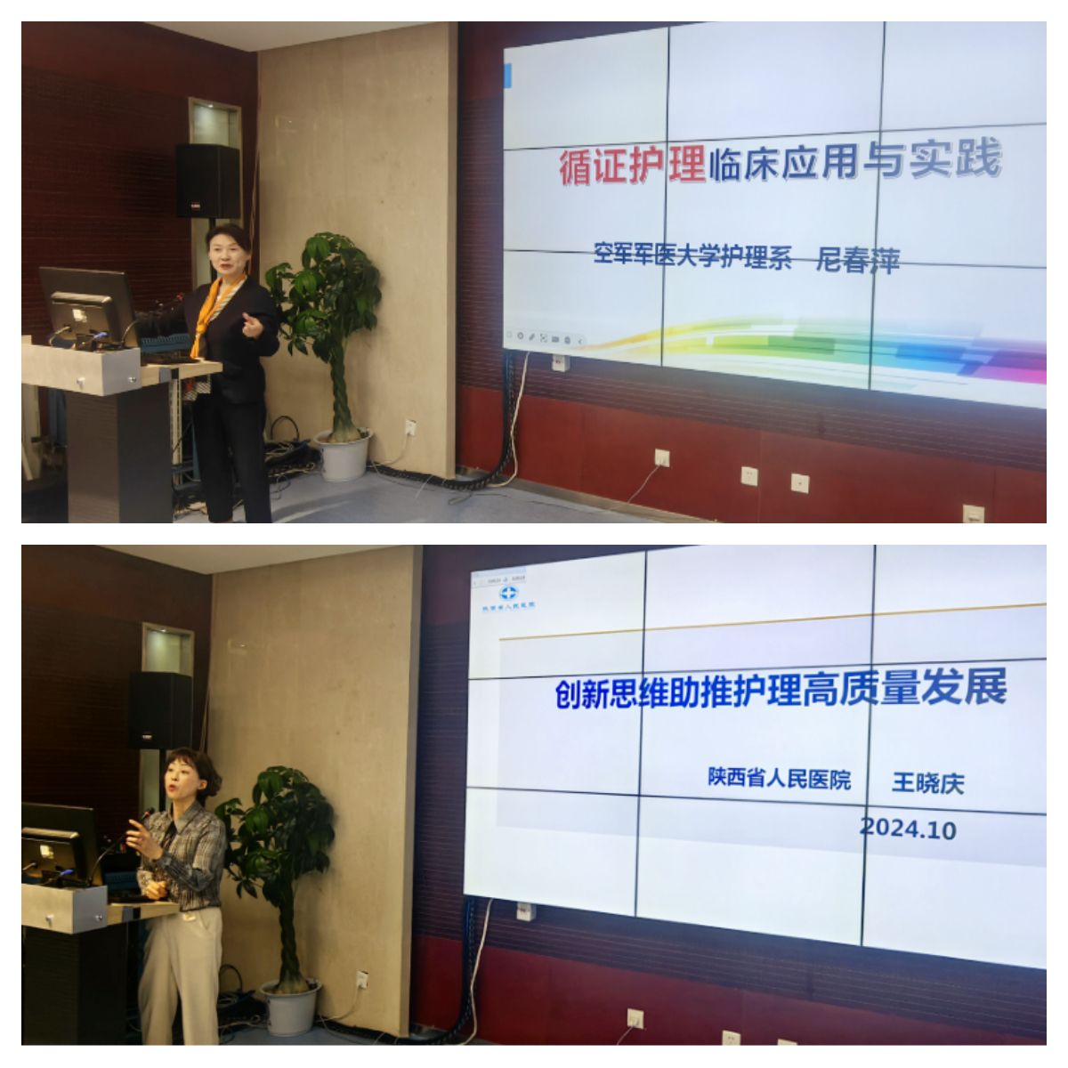 会上,空军军医大学护理系基础护理学教研室主任尼春萍教授围绕循证护理临床应用与实践,从概念、要素、步骤、实践四个方面入手,深入浅出地讲解了如何做好循证护理,重点对循证护理四个阶段八个步骤进行讲授,同时通过2型糖尿病患者运动的循证研究案例,对循证护理实践过程进行总结回顾,让组员对循证实践过程有了更加清晰和明确的认识,并提出要在实践中寻找证据、评价证据、遵循证据。黑料网王晓庆总护士长进行创新思维助推护理高质量发展讲座,分析了护理研究的现状、促进与阻碍因素,通过骨关节疾病快速康复的创新研究应用,介绍了项目实施过程和科研学术成果,特别是康复助手APP解决了众多患者康复难题,还分享了成果转化与应用的宝贵经验,并鼓励组员积极凝练科研创新方向,积极转化应用科研成果。