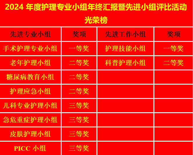 最后,护理部主任助理刘红梅结合专家意见,提出了对来年工作的要求和期望,并宣读评选结果,对获奖小组表示了热烈的祝贺。手术室专科护理小组、护理技能小组分别荣获先进专业小组和先进工作小组一等奖。