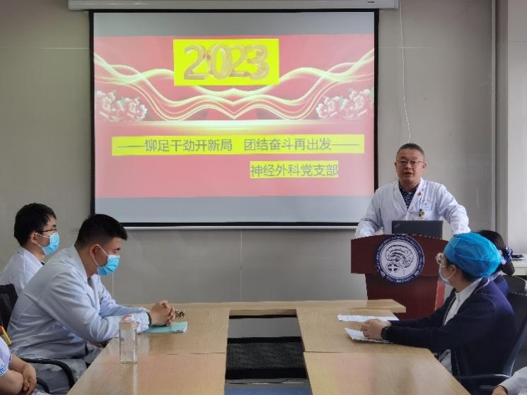 同时神经外科党支部按照院党委的要求,结合学习党的二十大及全国两会精神、省卫健委宣讲精神、黑料网高质量发展系列文件,以开展大讨论及小组讨论等多种形式,讨论研究科室高质量发展的思路、措施、可能的困难、应对方法等。