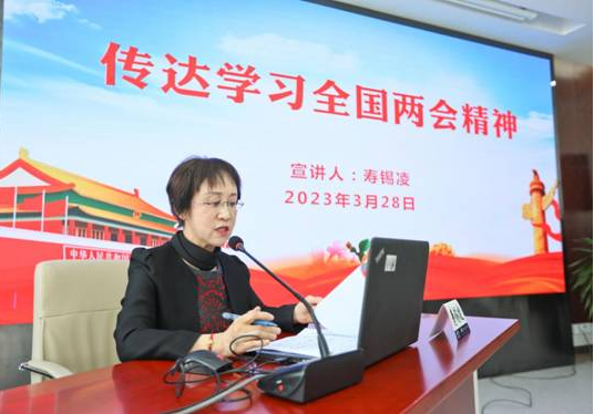 会上,寿锡凌结合参会期间的所见、所闻、所思、所想,分享了自己的参会感受和履职体会,全面系统宣讲大会精神,重点解读了两会期间习近平总书记发表的一系列重要讲话,帮助全院党员干部职工更好地学习消化、理解深化和运用转化。