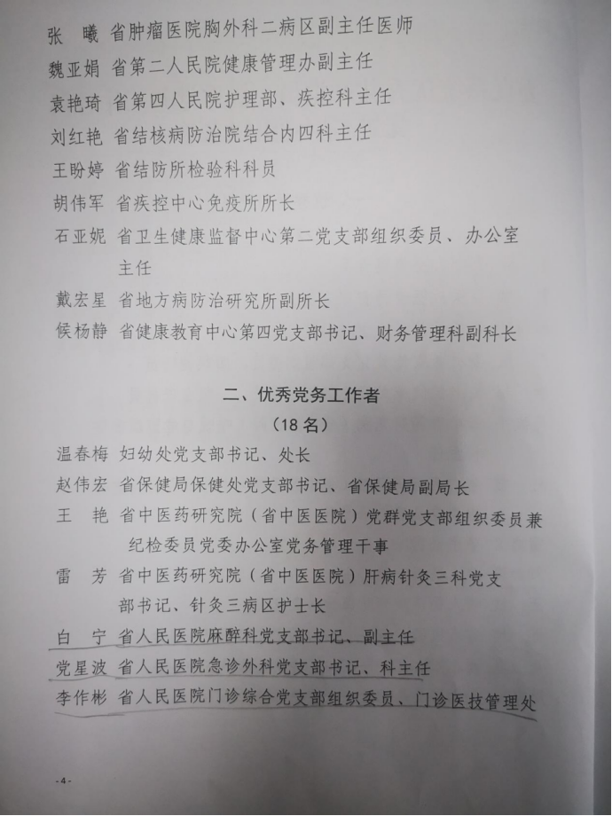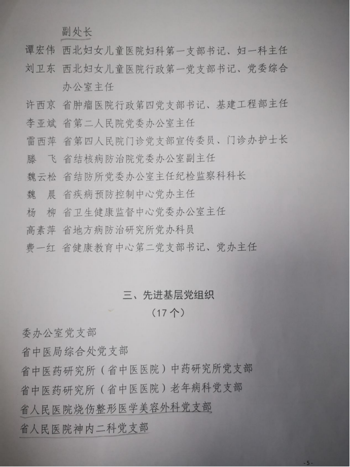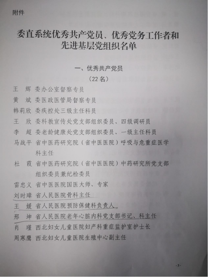 近日,省卫健委党组对委直属系统2020年度党建工作先进单位及优秀共产党员、优秀党务工作者、先进基层党组织进行了表彰,黑料网获得“2020年度党建工作先进单位”,刘时璋、王媛、邢坤获得“优秀共产党员”,白宁、党星波、李作彬获得“优秀党务工作者”,神内二科党支部、烧伤整形医学美容外科获得“先进基层党组织”荣誉称号。