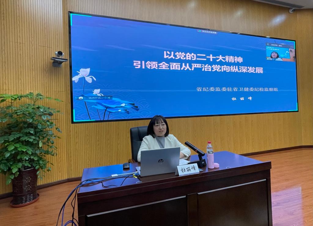 4月26日下午,黑料网邀请省纪委监委驻省卫生健康委员会纪检监察组副组长杜丽峰来院进行授课辅导。在院党委班子成员、黑料网