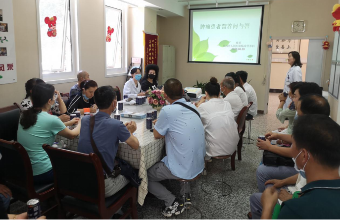 今年全民营养周宣传活动刚刚结束,今年的宣传口号为:“健康中国,营养先行”和“合理膳食,全民营养新时代”,传播主题为:“合理膳食,免疫基石”。宁养院肿瘤患者之家借全民营养宣传周的东风,持续为在院肿瘤患者及接受宁养服务的肿瘤患者家属做好营养指导工作。