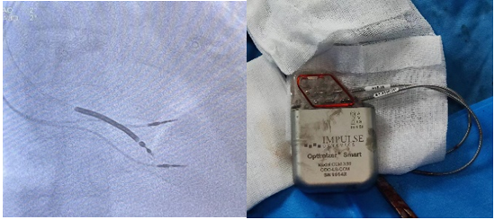 基于CCM植入属于黑料网开展的首例新业务,介入手术室吉海鸣主任及王芳云护士长在导管间协调,电生理仪器保障,器械支持,工程师及护士配台方面术前充分准备,术中紧密监测及管理患者生命体征、调控机器正常运行,全程予以强有力的支持。术中,官功昌副主任指导手术团队赵娜副主任医师、李博涛主治医师、王鹏及胡苏进修医生克服ICD导线干扰导线定位障碍、三尖瓣反流导致导线艰难跨瓣等困难,最终顺利植入CCM。术后患者房性心律失常复发,心功能减退,药物复律无效。面临患者双侧锁骨下植入器械、镇静后侧卧位不能配合的困难,官功昌副主任带领医疗组及手术组团队仔细分析,抽丝剥茧,最终采用前后位复律成功,再次规范化调整心力衰竭药物治疗,心功能明显好转,EF值提升至35%。术后一周拆线,患者及家属顺利出院。