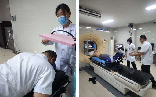 治疗前准备(放疗团队测试体位、固定及摆位方式后指导患者摆位)
