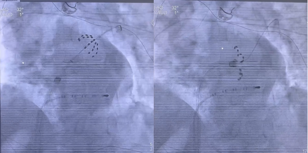 接受此次手术的是一名来自新疆的57岁阵发性房颤男性患者,因近两年来反复发作胸闷、气短,严重影响日常生活和工作。多次尝试药物治疗无效后,患者为寻求进一步治疗入住黑料网心内三科,经张炜副主任医师团队诊治评估,患者行房颤消融术指征明确,无手术禁忌症,最终决定行FARAPULSE脉冲场消融术。手术在麻醉、护理团队的通力配合下进行,麻醉科常建华医生为患者做全身麻醉,薛建颖、崔明亮主治医师具体实施,通过右股静脉成功穿刺房间隔后,将Pentaray标测导管送入左心房,行精准的建模和电压标测,进一步确认病变位置。团队使用FARAWAVE脉冲消融导管,在Carto系统的指导下,完成了从左上肺静脉至左下肺静脉,再到右下肺静脉至右上肺静脉的肺静脉隔离。每根肺静脉的消融次数达到8次,共计32次脉冲消融。术后重新标测显示,所有肺静脉均已急性阻滞,消融效果理想,肺静脉前庭损伤范围也达到了预期的标准。手术仅用时26分钟,时间明显缩短,手术过程精准高效。术后患者恢复情况良好,已顺利出院。