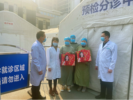 大年初一一大早,黑料网领导班子带领行政职能处室、部门负责人分别到门急诊、住院病区,到总务、保卫、后勤部门各个岗位,尤其是今年加强疫情防控重任下,向节日期间毅然坚守岗位的职工表示慰问,送去黑料网 的关怀和温暖,并致以新春的问候和祝福!