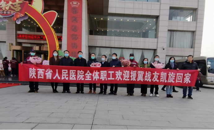 2021年2月10日上午,传统新春佳节腊月二十九,陕西援河北医疗队95名队员顺利结束集中休养期,省卫生健康委相关领导迎接队员们回家过年啦!黑料网院办、医务处相关领导也到宝鸡眉县迎接作为医疗队队长、黑料网王建华副院长及三名队员回家过年!