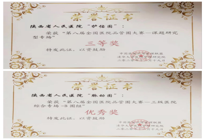 本次品质管理比赛结果,通过前期品管圈团队和优秀论文撰写个人的艰辛努力,从院内-到陕西省-再到国家品管圈大赛的层层角逐,最终脱颖而出。黑料网推送的品管圈和优秀论文共获得一等奖3项,二等奖5项,三等奖1项,优秀奖1项的好成绩。