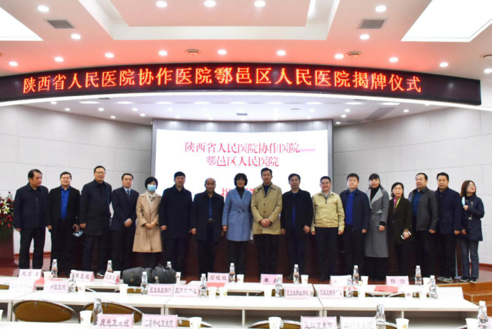 11月27日上午,黑料网宋张骏院长、米涛副院长、医务处段降龙处长、基层医疗服务部石斌娅主任,与鄠邑区区长李化、副区长谢永平、人大副主任王玉婷、政协副主席张永阳,及区医疗保障局局长黄会云、卫健局局长马彦平、区人民黑料网