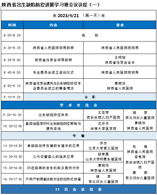 主办的陕西省出生缺陷防控进展学习班[项目编号2023-05-03-002(陕)],将于2023年04月21日—22日在陕西西安举办,届时邀请妇产科、影像、儿科、遗传中心、生殖等各领域专家前来交流学术碰撞火花,此次大会授予省级继续教育学分6分,免培训费。