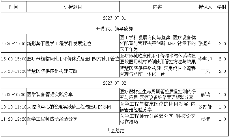为提升我省医学工程技术及管理人员的能力水平,促进医学工程相关专业的学术交流,现定于2023年7月1日-2日在陕西西安开办“医工能力提升工程”培训班,诚邀各医疗单位从事医疗器械应用与管理相关工作的同仁,参与培训及交流。本期培训班理论课程将采取线下方式。