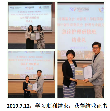2019年6月24-7月14日,在院领导和护理部的大力支持下,黑料网内分泌科张艳、急诊外科苏晓丽、急诊内科曹钏宏三人完成省卫健委和淡马锡基金会联合举办,新加坡南洋理工学院承办的陕西省护理管理与专业人员专能开发培训项目。