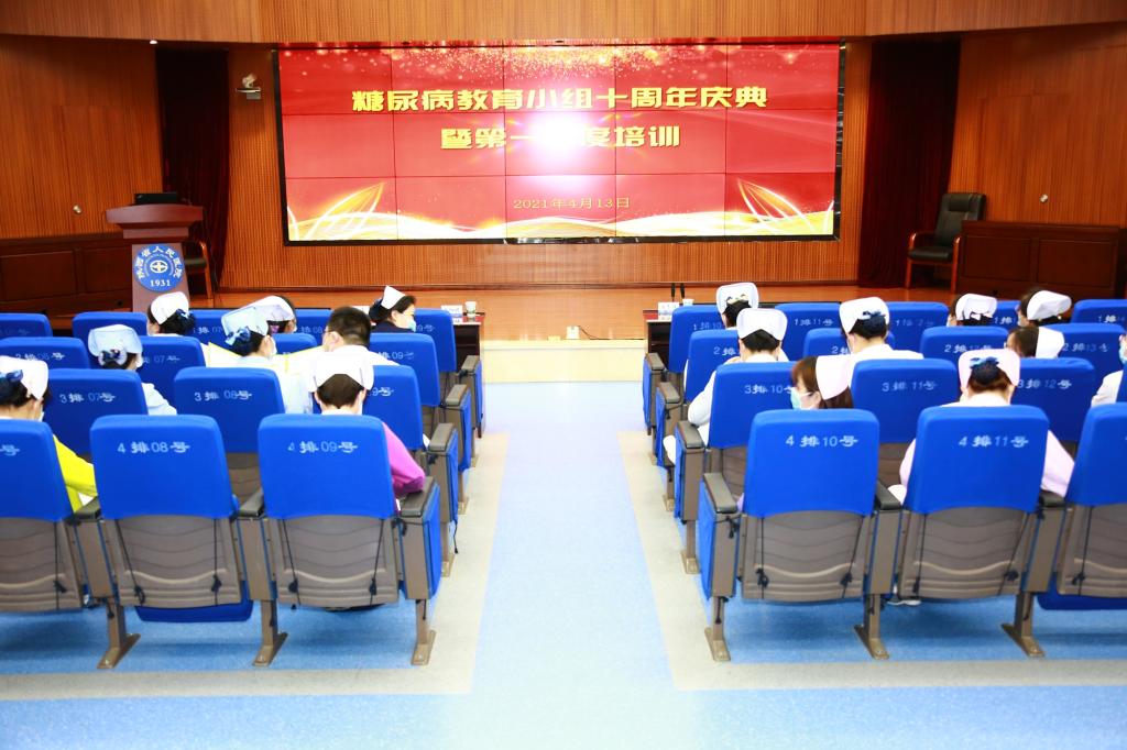 2021年4月13日下午,糖尿病教育小组在门诊17楼会议室举办小组成立10年教育培训活动。张玉莲副院长致辞,护理部吴红娟主任、第三临床党总支惠蓉书记讲话。内分泌糖尿病病院常务副院长王养维主任和鲁文菊护士长授课,张艳护士长主持。医生、进修人员及组员约80余人参会。