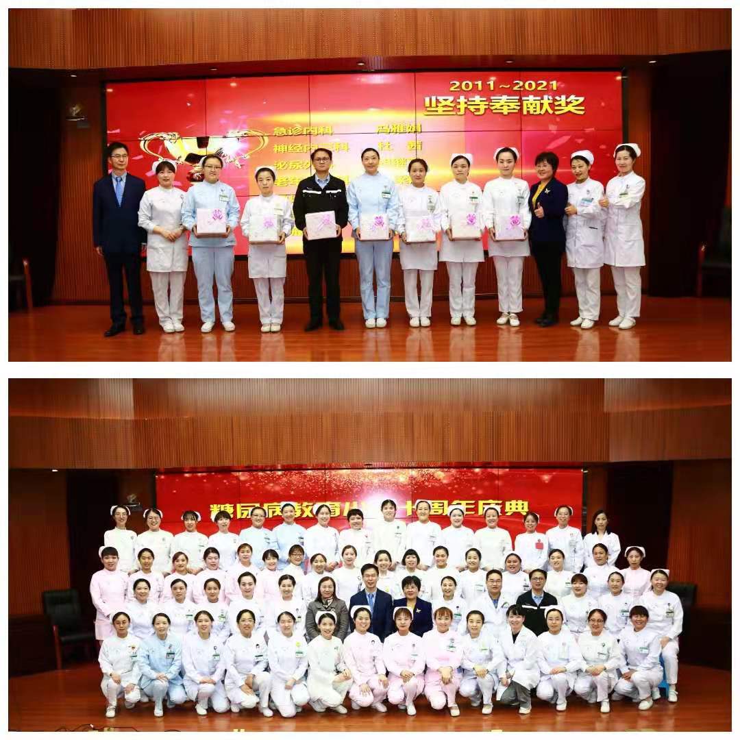 活动首先播放了小组成立10周年视频。张玉莲副院长致辞,肯定了小组10年来的工作成绩,鼓励小组成员在以后的工作中勇于创新,做好日常工作的同时加强科研的培训和学习。吴红娟主任对小组成员提出“学专业、精技术、提能力”的要求。惠蓉总支书记寄语小组成员:刻苦学习、履职尽责、开拓创新。小组2011年成立以来,急诊内科冯雅娟等7位成员一直默默坚守和坚持在小组工作,并在科室糖尿病专科护理工作中发挥了积极地推动作用,因此给7位组员特别颁发“坚持奉献奖”。