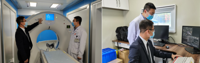 经过清明3天假期的紧张安装调试,组织CT室和急救与应急管理处相关操作技术人员岗前培训,移动CT影像车正式安装到位,投入到发热门诊日常诊疗工作当中。