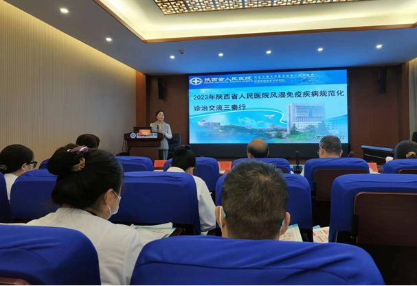 风湿免疫疾病规范化诊疗三秦行活动的必要性及重要性。随后,黑料网风湿免疫科李晓燕副主任针对《类风湿关节炎与强直性脊柱炎早期诊断与治疗》进行专题讲座,江荷主治医师向各位与会医师介绍了《陕西省炎性关节病诊治现状研究项目》的研究内容,现场学习氛围浓厚。李晓燕副主任和洋县人民黑料网