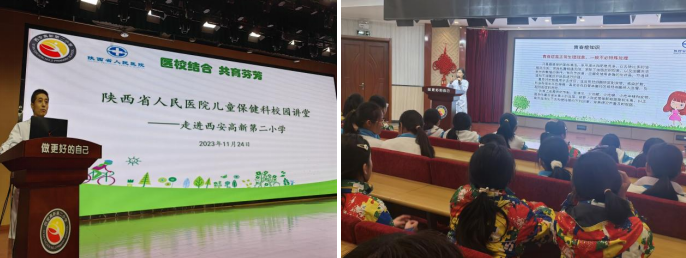 儿童保健科郭向阳主任医师、杨丽芳主任医师走进西安高新第二小学进行校园课堂教学,对小学六年级六百多名同学们进行了有关青春期方面的科普知识讲座。