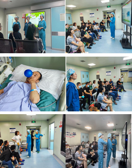 急诊外科开展以“鼓励患者参与患者安全—肺功能锻炼”为主题的宣教活动。介绍了长期卧床患者肺功能锻炼的意义和重要性,讲解了肺功能锻炼的训练方法、有效咳嗽动作及训练操等,同时示范了缩唇呼吸和腹式呼吸的方法,并对患者给予了现场指导。