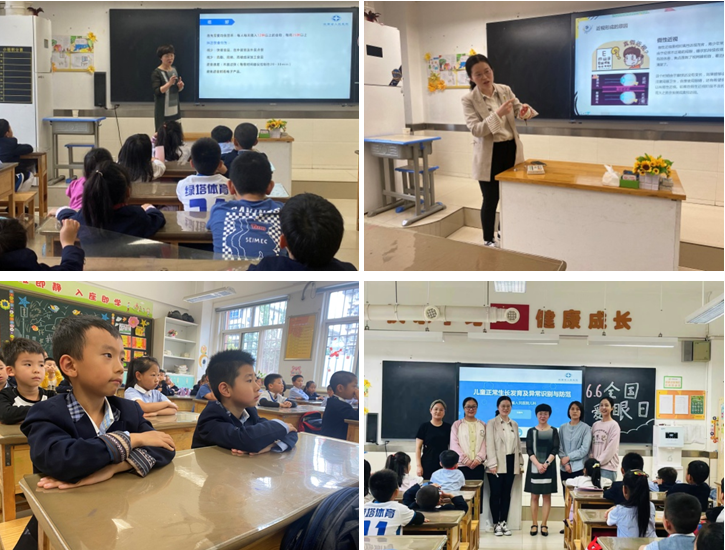 及社会的各方紧密协作,这也是我国健康事业发展规划中的重要内容。然而近年来,因各方面因素的综合影响,儿童生长发育相关疾病及儿童近视的发病率呈现增高的趋势,也成为了困扰千万家庭及学校的难题。为了更好地进行疾病预防,儿科主任“春风奶奶”精心为大南分校的学生们送去了关于生长发育方面的“营养大餐”,通俗易通的语言,耐心细致的讲解给孩子们的幼小心灵早早植入“健康的种子”,受到了小朋友们的喜爱!同时,眼科的曹颖主治医生为学生们娓娓讲解了如何健康用眼及预防近视眼的发生,在“全国爱眼日”到来之际,送给小朋友们又一“健康大礼”。